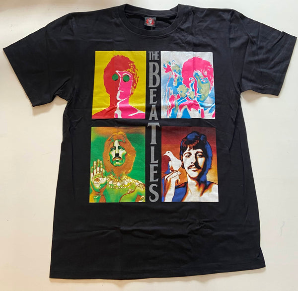 This shirt has the Fab Four in psychedelic pictures. Printed on a soft spun cotton black Unisex T-Shirt, with The Beatles logo printed on the back in white print. Would make a perfect gift for the music lover among your friends family or even yourself!